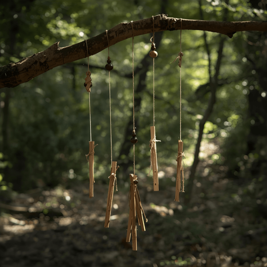 Tie sticks of different lengths to a larger branch with string or twine. Add some painted stones or pressed leaves for decoration. Hang it outside and enjoy the gentle sound and movement.