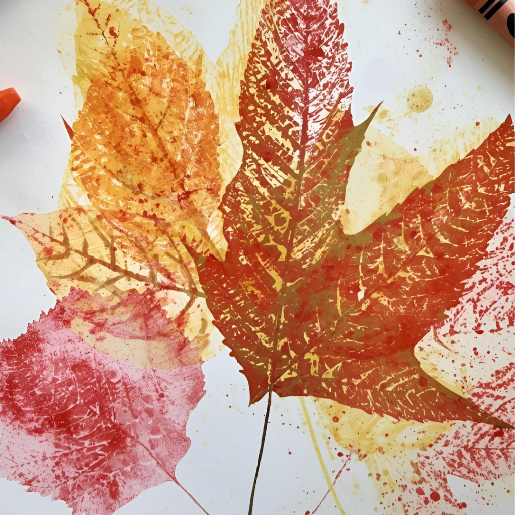 Paint one side of a leaf and press it onto paper to make natural prints. Experiment with different shapes and colours – kids can turn them into cards, posters, or even wrapping paper.
